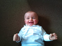 He seems to have grown a little, he's filling his 6-9mths clothes a bit more and he's cut one of his top front teeth. Better keep the fingers away now. He's sitting for longer now too, still not mastered crawling, but theres all the time in the world for this.